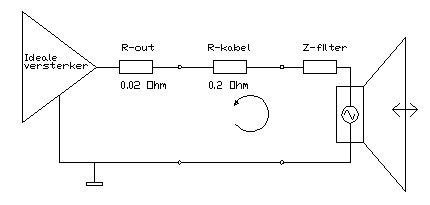 Er wordt wel eens gedacht dat die weerstand niet meespeelt omdat 'ie zo'n inherent deel van de luidspreker zelf is, maar dat is een misvatting. Een elektodynamische luidspreker bestaat uit een spanningsbron waarvan de inwendige impedantie alle mechanische eigenschappen vertegenwoordigt (massa, veerkracht, ook de mechanische demping, indien aanwezig), de Ohmse weerstand van de spreekspoel en de zelfinducte van de spreekspoel. Deze laatste speelt meestal niet zo'n belangrijke rol, en als 'ie wel meespeelt maakt 'ie het alleen maar erger.